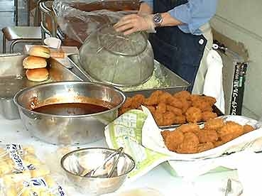 同窓会の運営する『コロッケパン屋』もめでたく開店のはこびとなりました。昨年までの焼き鳥屋からガラっと変わった食材になかなか調理のペースが掴めず、あれやこれやと夢中になって試行するうちに初日終了。う〜む・・ノルマ達成できませんでした・・残念!